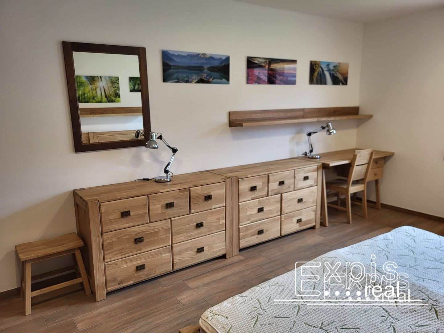 V izbách, na chodbách a v kuchyni sú v celom výškovom profile osadené montované skrine. Na oknách sú vnútorné žalúzie a vonkajšie sieťky proti hmyzu.