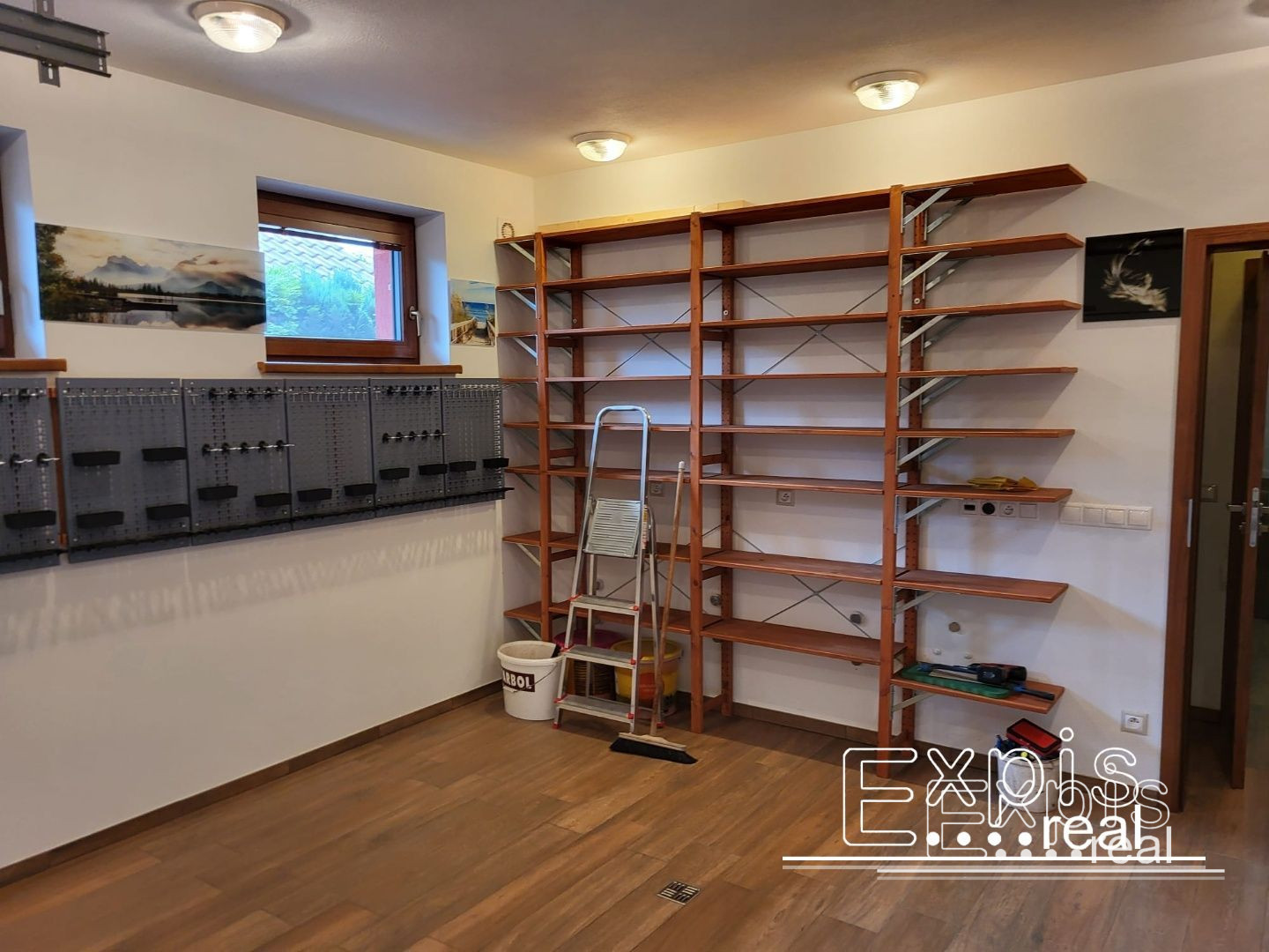 V garáži, komore a v sklade sú namontované drevené police. V kúpeľni je sprcha, vaňa, bidet a dvojumývadlo. Podlahové kúrenie je napojené z kotla na plyn. V technickej miestnosti s plynovým kotlom je ďaľšie WC s umývadlom. V technickej miestnosti je spravená príprava pre napojenie automatickej práčky. Stropy sú betónové a zateplené 20cm polystyrénom, na ktorom je betónový poter.