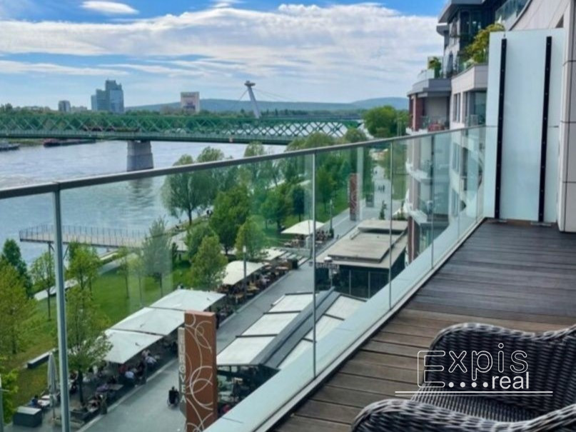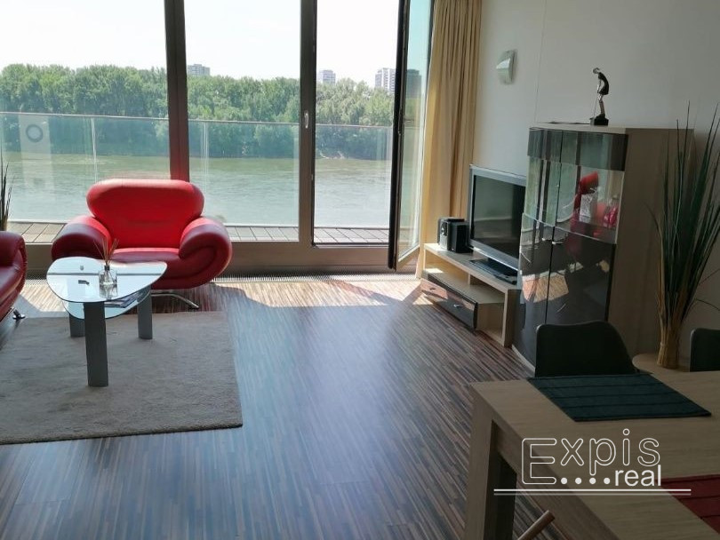 Byt je kompletne zariadený pripravený na okamžité bývanie. Výhľad na Dunaj, 4. Poschodie. 24 hodinová ochranná služba, kamerový systém. 60,05m2 + 10,44m2 terasa.