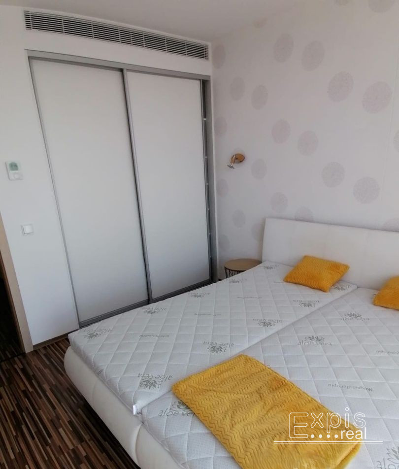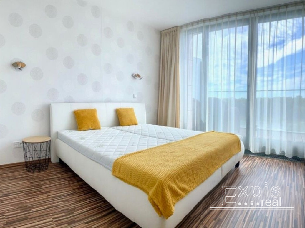 Spálňa je vybavená manželskou posteľou a vstavanou skriňou a samostatnou klimatizáciou. Zo spálne je taktiež východ na terasu.Kúpeľňa spolu s WC, vaňa.