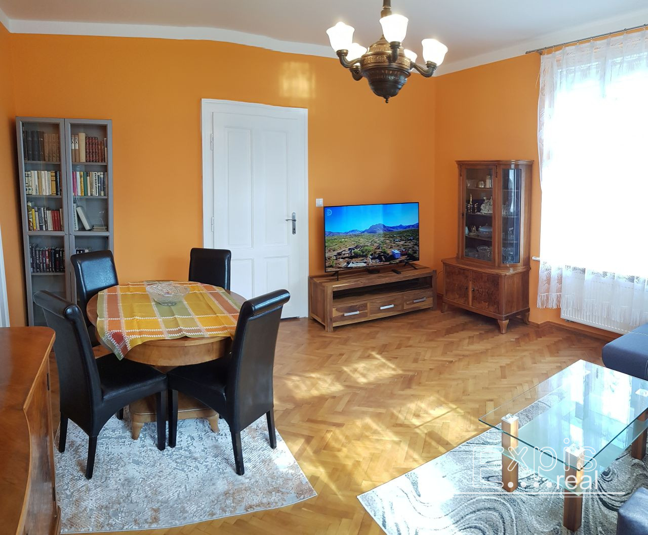Obývačka je zariadená štýlovým starožitným nábytkom, nová rozťahovacia sedacia súprava, konferenčný a jedálenský stôl, TV napojený na káblovú televíziu Orange - rozšírený súbor, v spálni nový nábytok (francúzska posteľ s úložným priestorom, ortopedické matrace, priestranné skrine, komoda, pracovný stôl...)