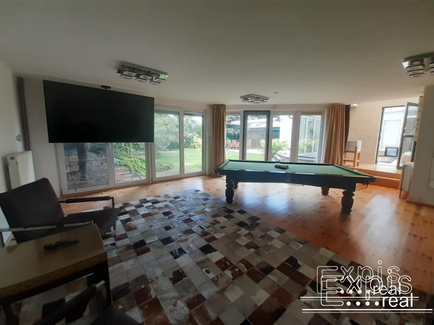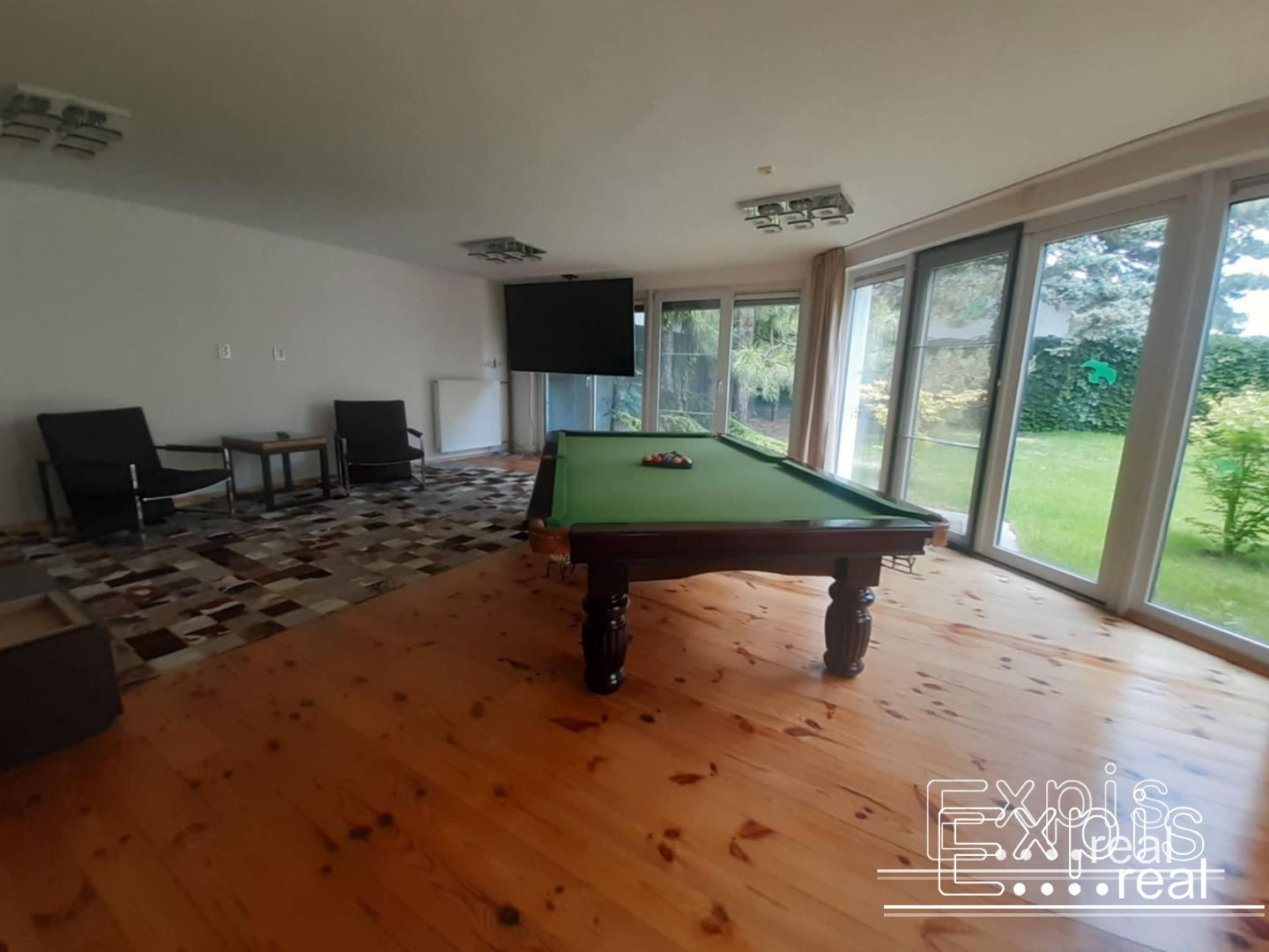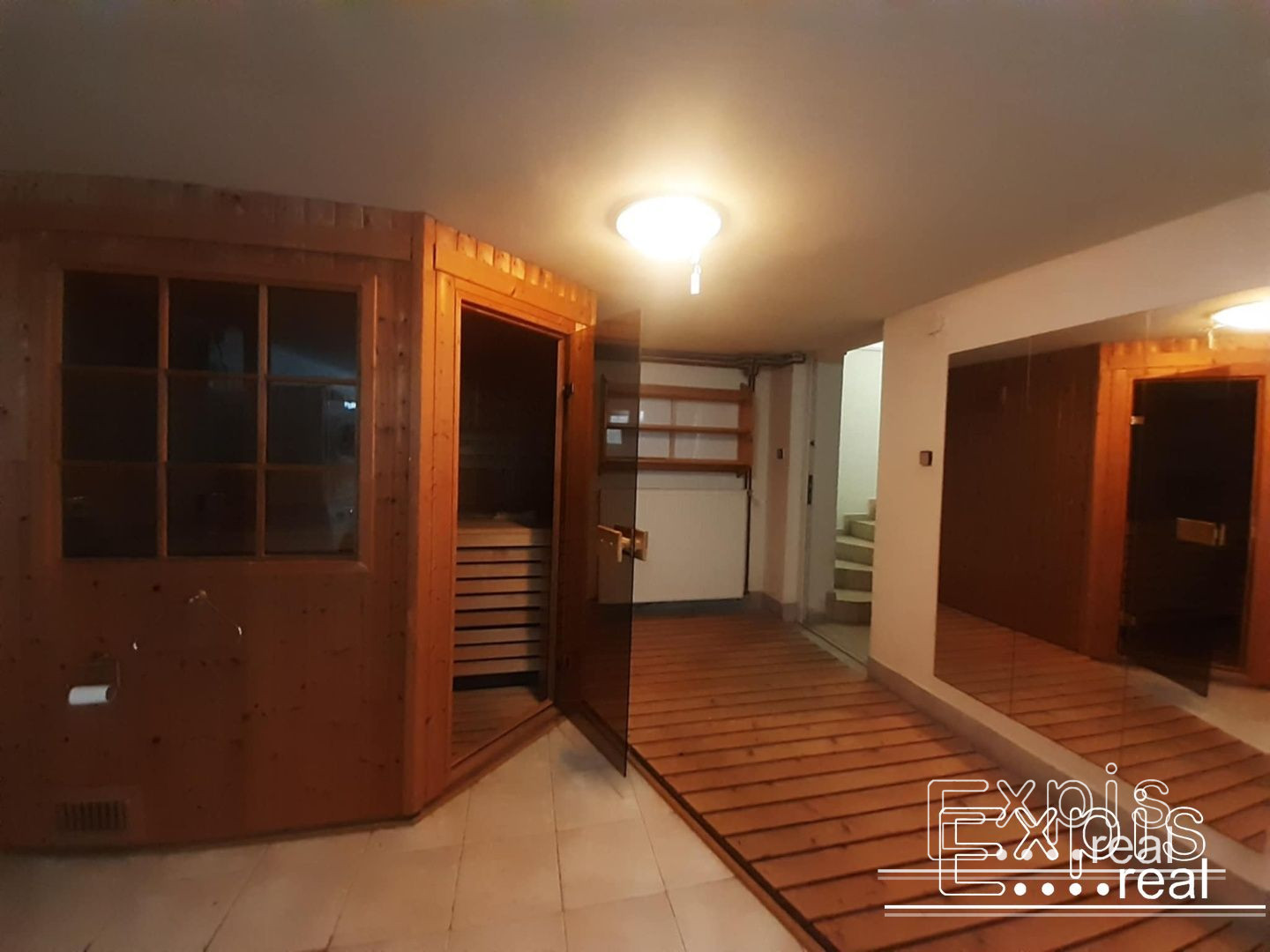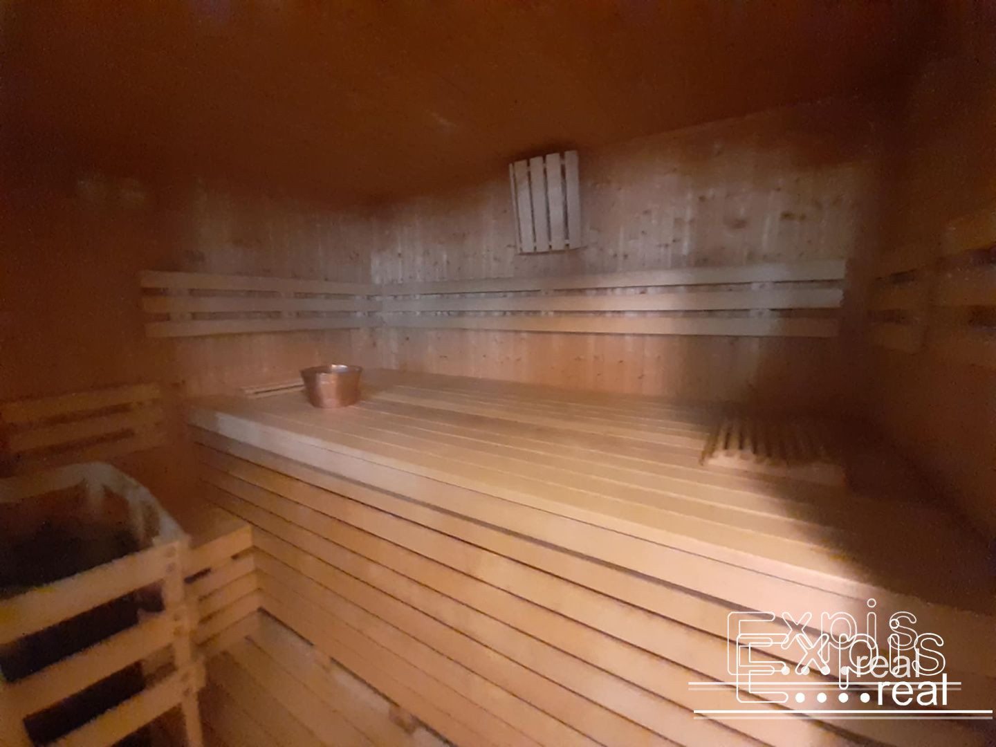 Vstupná hala, priestranna kuchyňou vybavenou zabudovanými spotrebičmi (chladnička, mraznička, el. rúra, sporák, umývačka riadu, kávovar). Súčasťou svetlej kuchyne je aj veľký jedálenský priestor, špajza. Ďalšími miestnosťami sú spoločenská miestnosť vybavená biliardovým stolom a TV, hobby miestnosť, hlavná spáleň s vlastnou kúpeľňou, 5 samostatných spální. V dome sa nachádzajú tri kúpeľne a štyri WC. Súčasťou domu je aj sauna (suchá aj parná), ochladzovací bazén, práčovňa, pivničný priestor,množstvo úložného priestoru