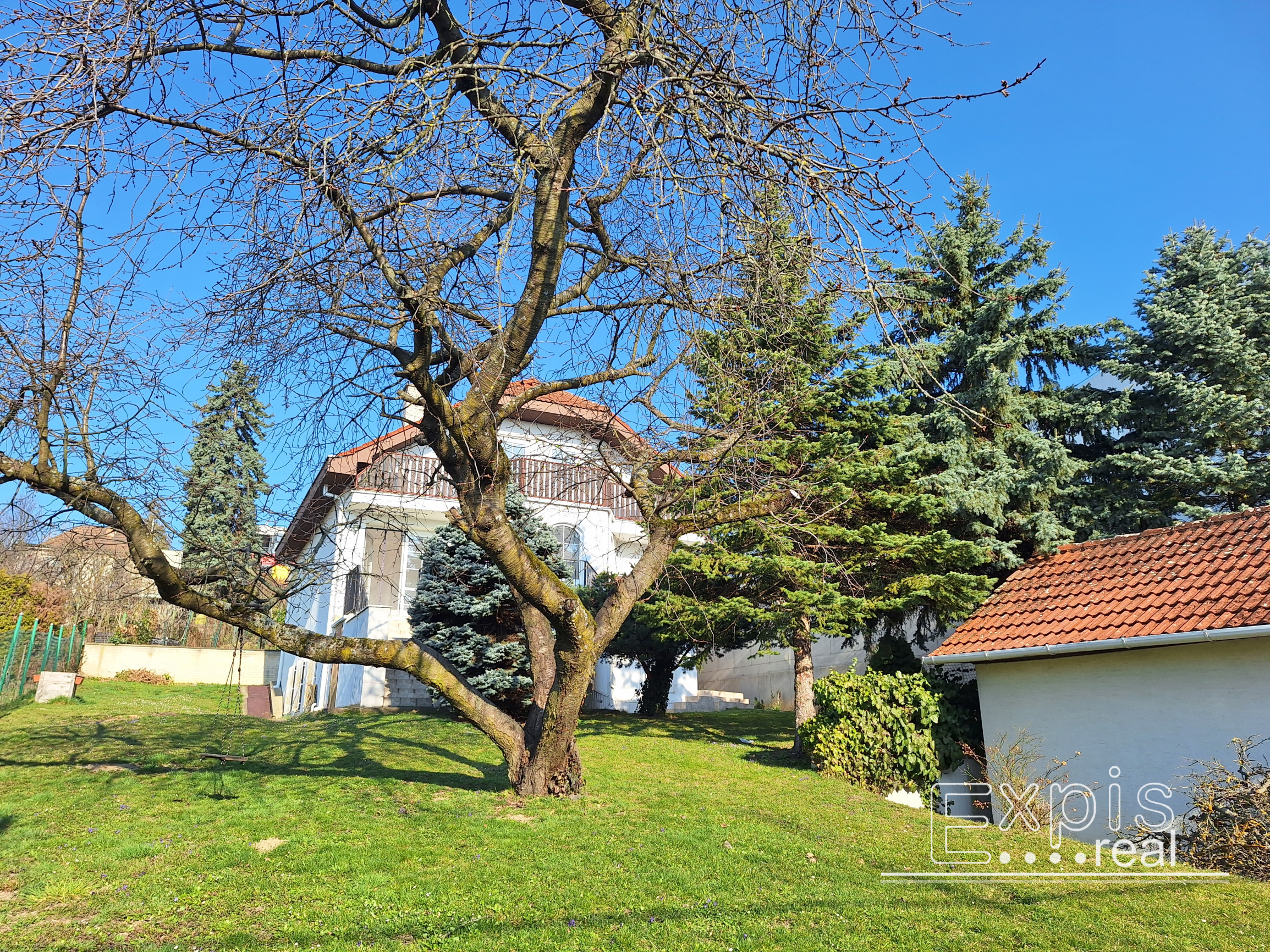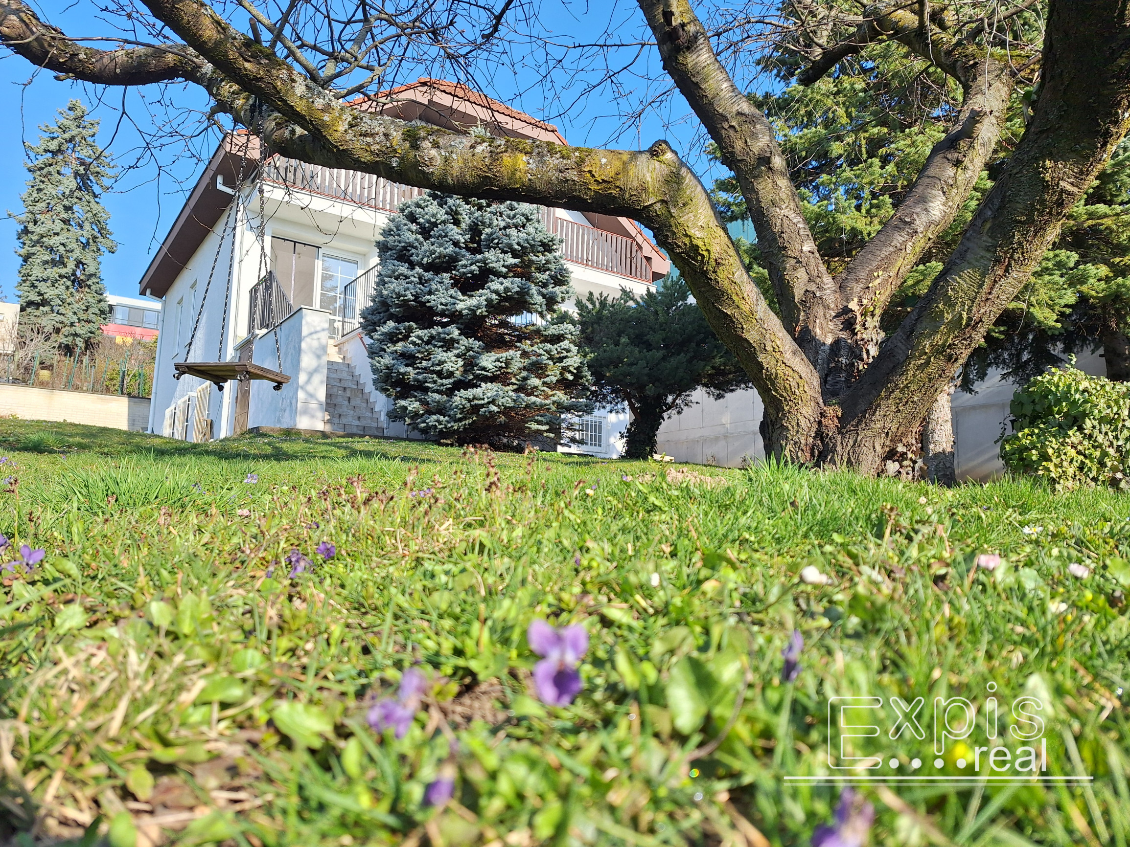 Dom je situovaný v mierne svahovitej záhrade s ihličnatými a ovocnými stromami a jeho obyvateľom poskytuje súkromie.