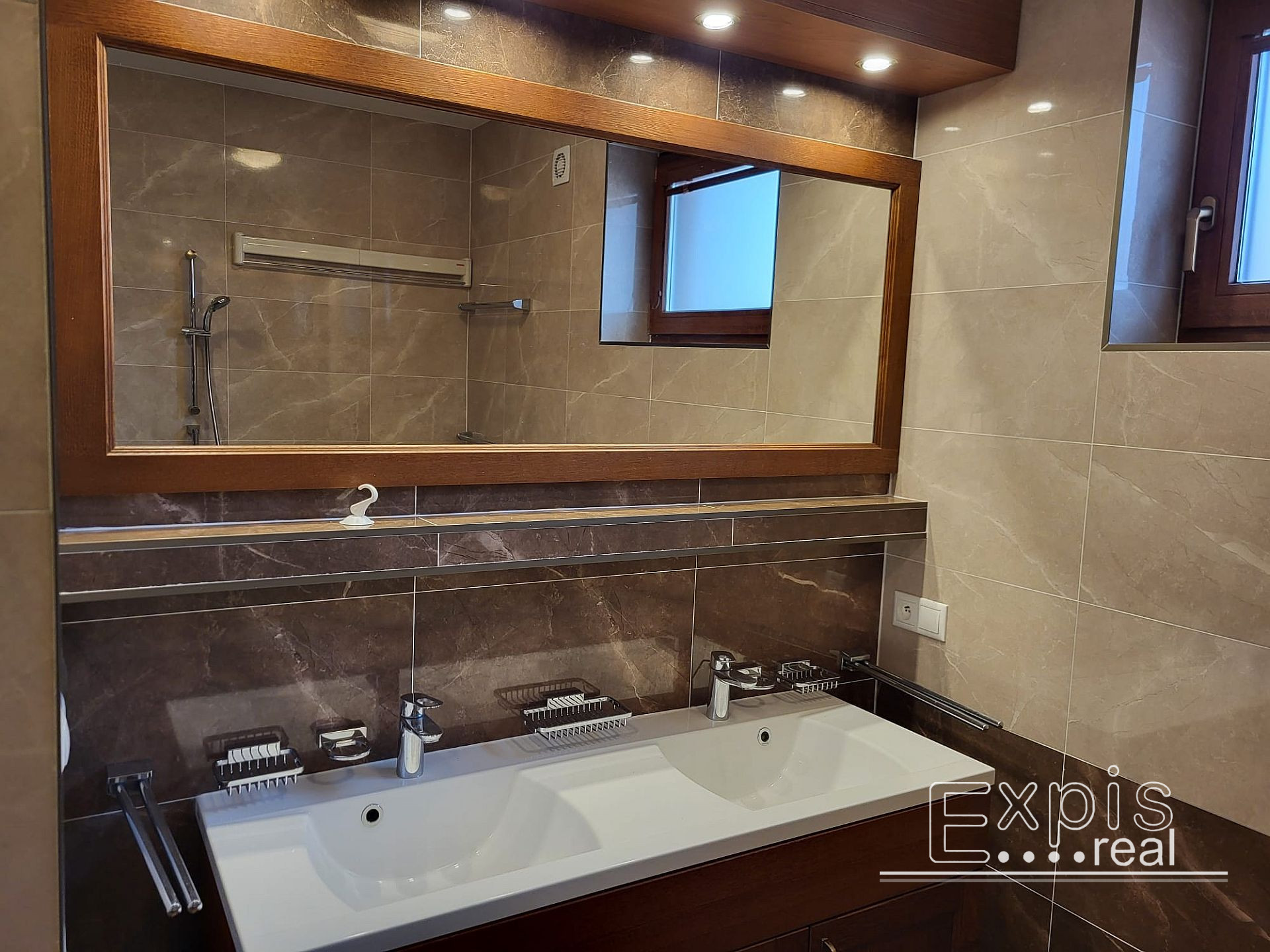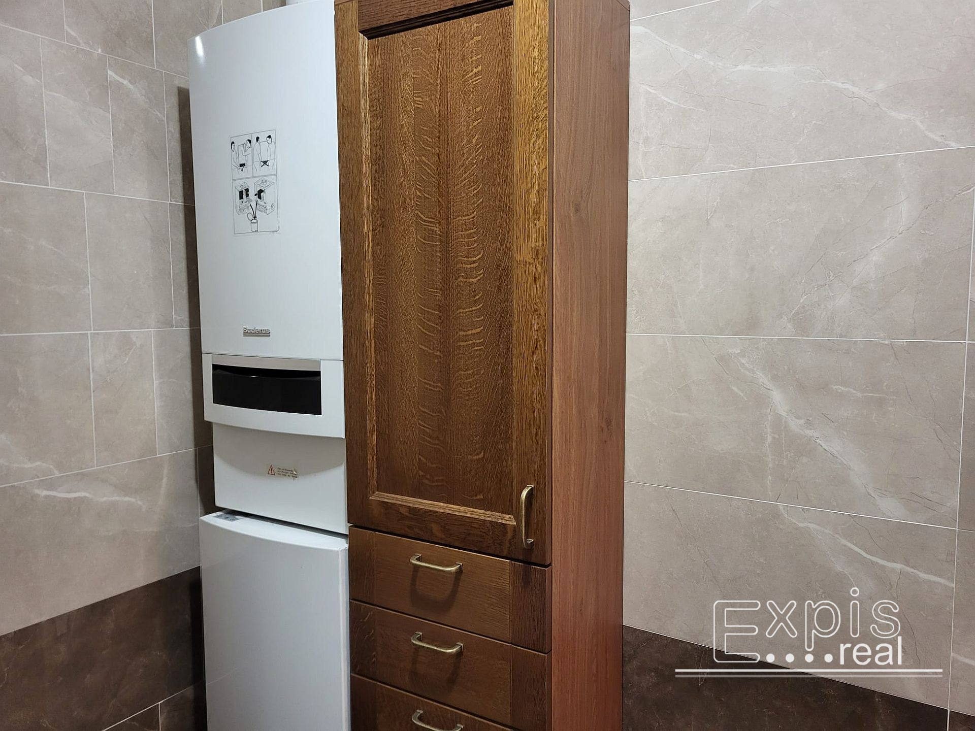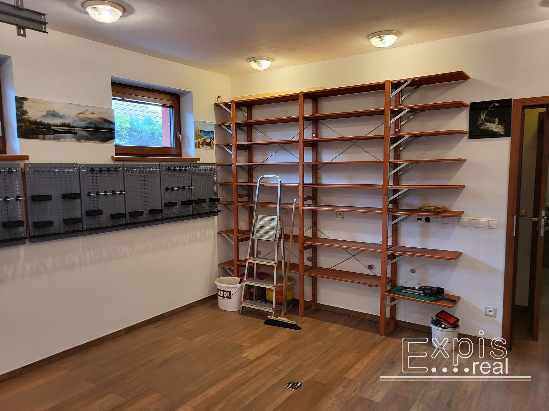 V garáži, komore a v sklade sú namontované drevené police. V kúpeľni je sprcha, vaňa, bidet a dvojumývadlo. Podlahové kúrenie je napojené z kotla na plyn. V technickej miestnosti s plynovým kotlom je ďaľšie WC s umývadlom. V technickej miestnosti je spravená príprava pre napojenie automatickej práčky. Stropy sú betónové a zateplené 20cm polystyrénom, na ktorom je betónový poter.