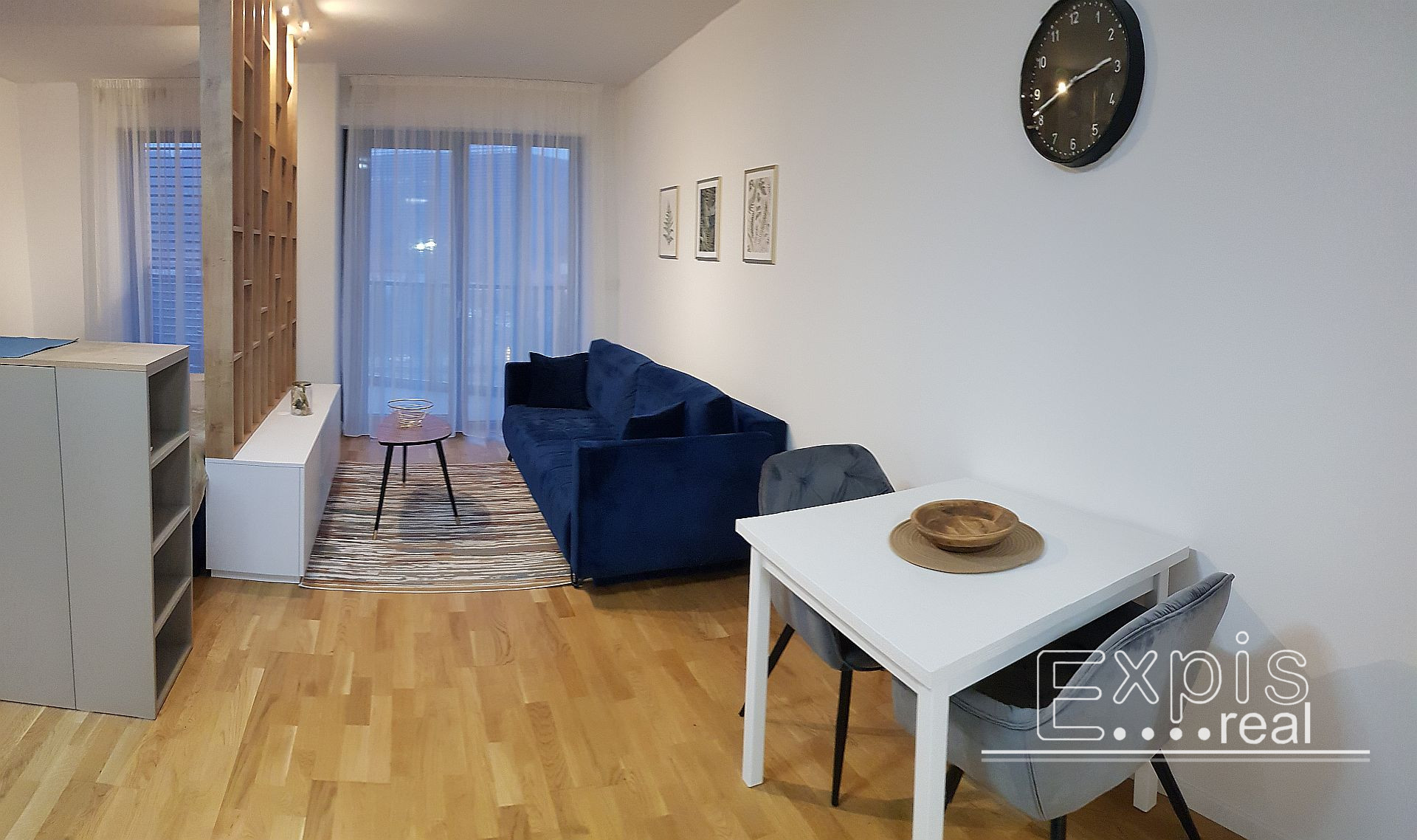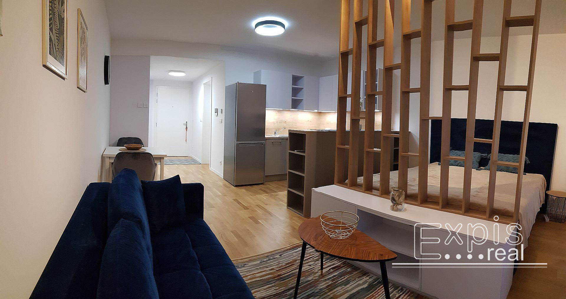 Realitná kancelária Expis real ponúka na prenájom exkluzívny, slnečný 1 a pol izbový byt s krásnym výhľadom na Karpaty, kompletne štýlovo zariadený novým nábytkom, s podlahovým kúrením, stropným chladením, hliníkovými oknami, priestranným balkónom (20 m2) a garážovým parkovacím miestom v novostavbe Guthaus.