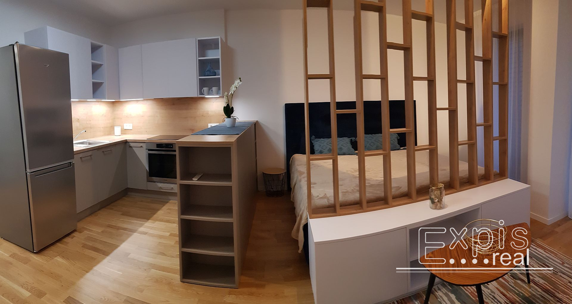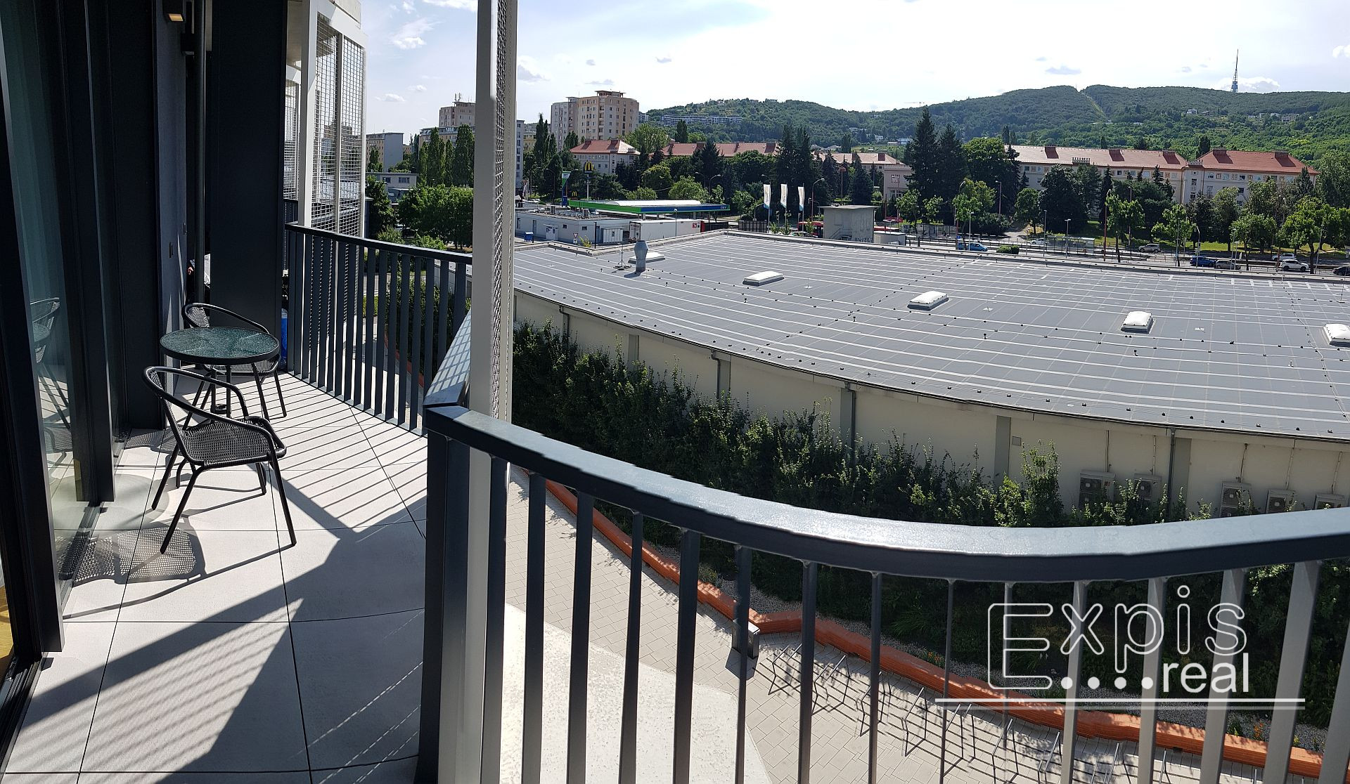 Realitná kancelária Expis real ponúka na prenájom exkluzívny, slnečný 1 a pol izbový byt s krásnym výhľadom na Karpaty, kompletne štýlovo zariadený novým nábytkom, s podlahovým kúrením, stropným chladením, hliníkovými oknami, priestranným balkónom (20 m2) a garážovým parkovacím miestom v novostavbe Guthaus.
